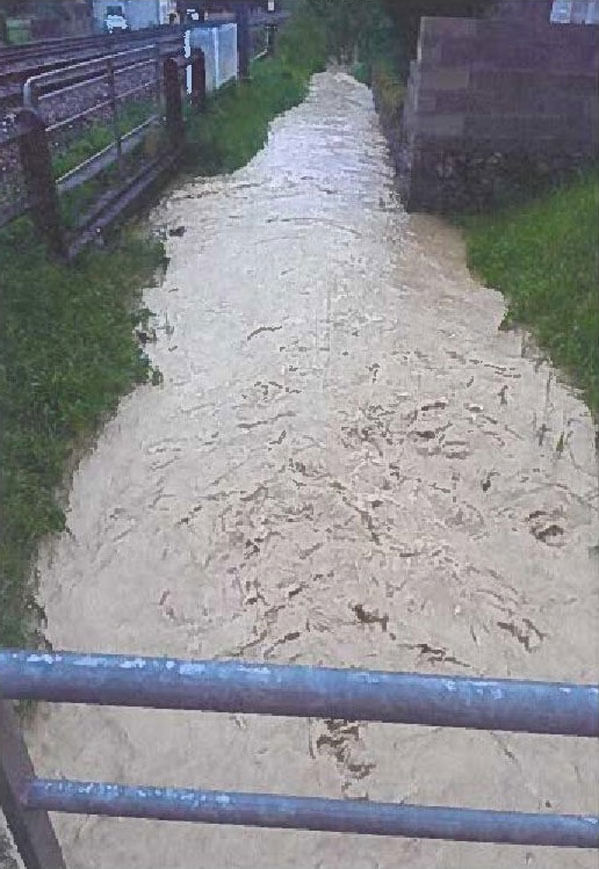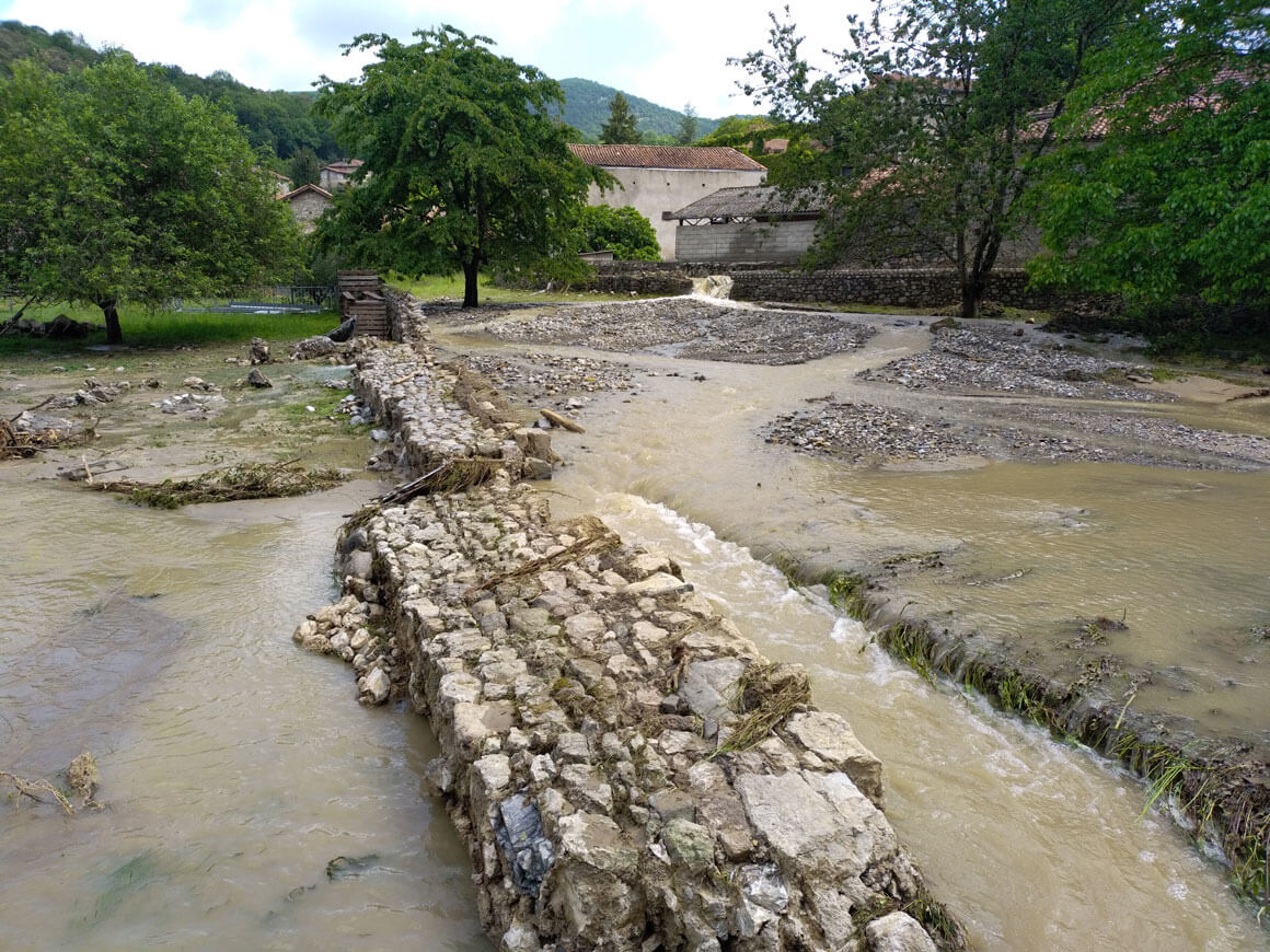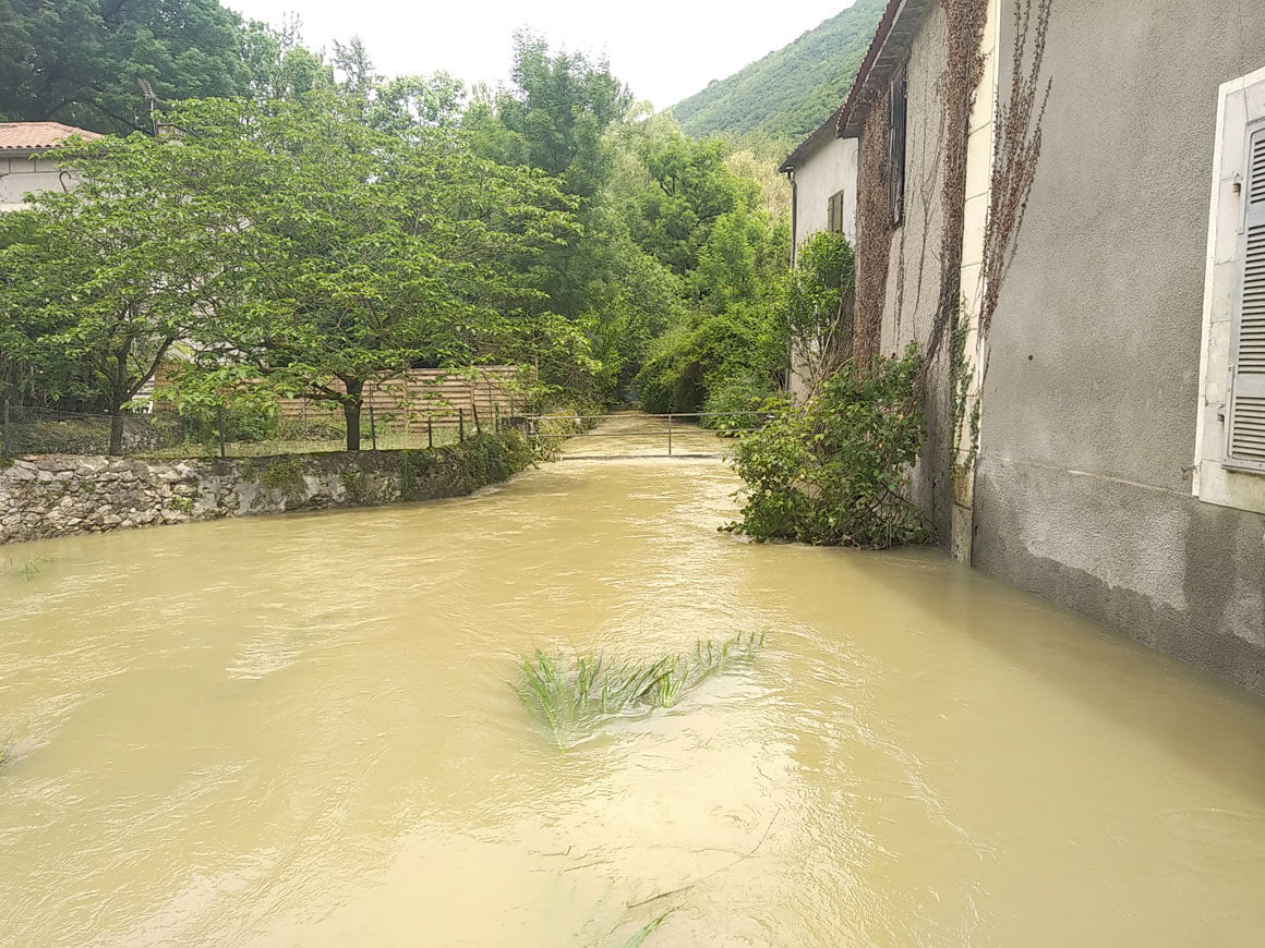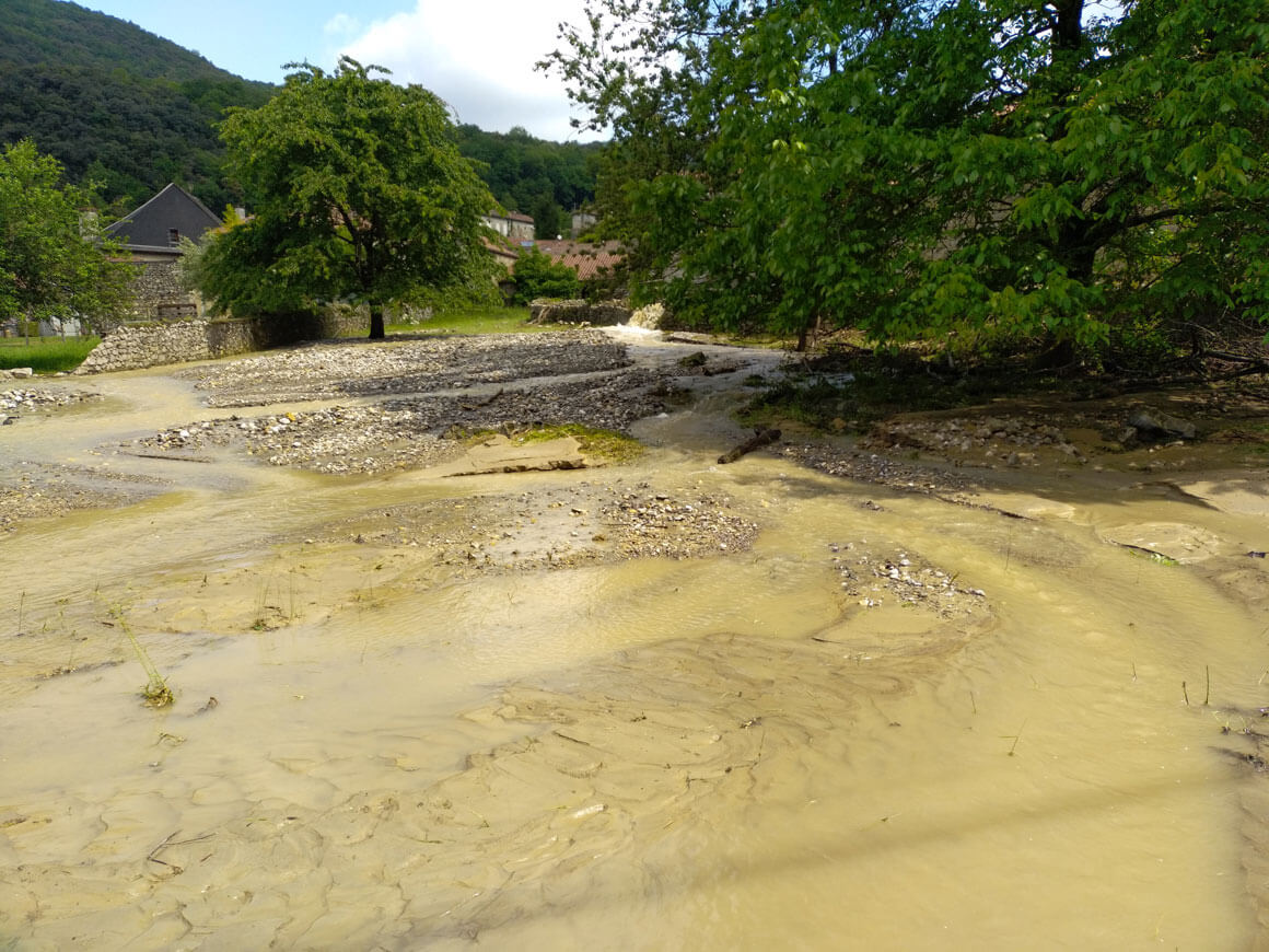 Les fortes précipitations ont provoqué le débordement du ruisseau du Sarté dans la traversée du village de Galié. Ce phénomène d’inondation par débordement a provoqué un important ruissellement, accompagné par endroit de ravinement et de phénomènes d’engravement.